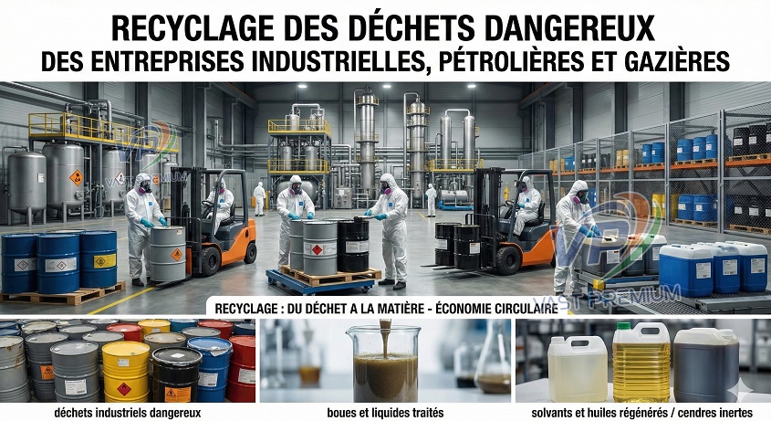 Les déchet dangereux sont présents dans toutes les activités industrielles, Chaque année, les entreprises industrielles, pétrolières et Gazières produisent plusieurs millions de tonnes de déchets dangereux, Les déchets provenant de la fabrication et de l’utilisation des produits chimiques utilisés pendant le forage des puits pétroliers et gaziers, produits de stimulations, colles, résines, peintures, encres, huiles, diluants, décapants, dégraissants, piles et accumulateurs….peuvent contenir des produits dangereux, même produits en petites quantités , ces déchets sont dangereux, ils entraînent des risques pour les salariés et pour notre environnement, au sein même de l’entreprise, à l’extérieur lors de leur transport et de leur traitement.