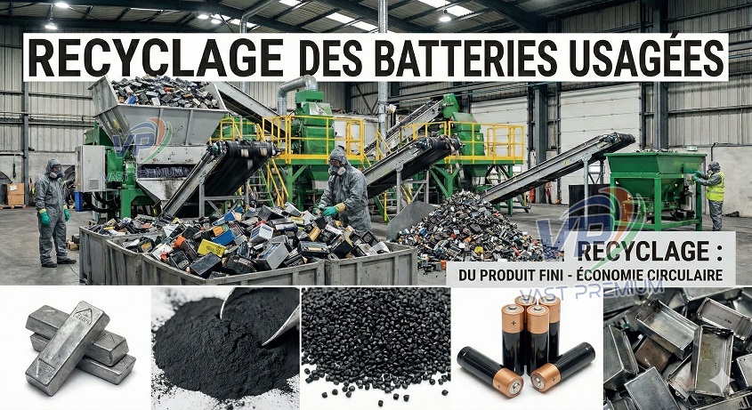 Eurl Vast Premium est conventionnée avec des Recycleurs Agréés pour la collecte et l’élimination des Batteries Usagées, La Batterie usagée est envoyée directement aux recycleurs agréés peur leur élimination.