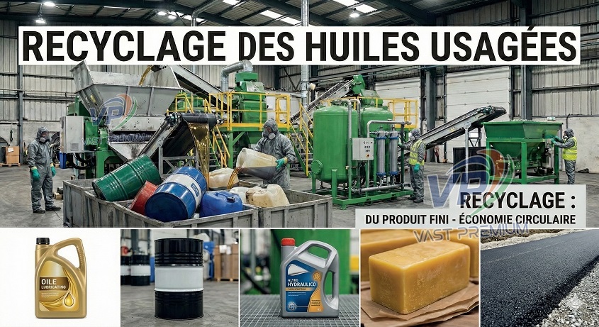 Eurl Vast Premium est conventionnée avec des Recycleurs Agréés pour la collecte et l’élimination des Huiles usagées, L’huile usagée est envoyée directement aux recycleurs agréés pour son Recyclage et Valorisation.