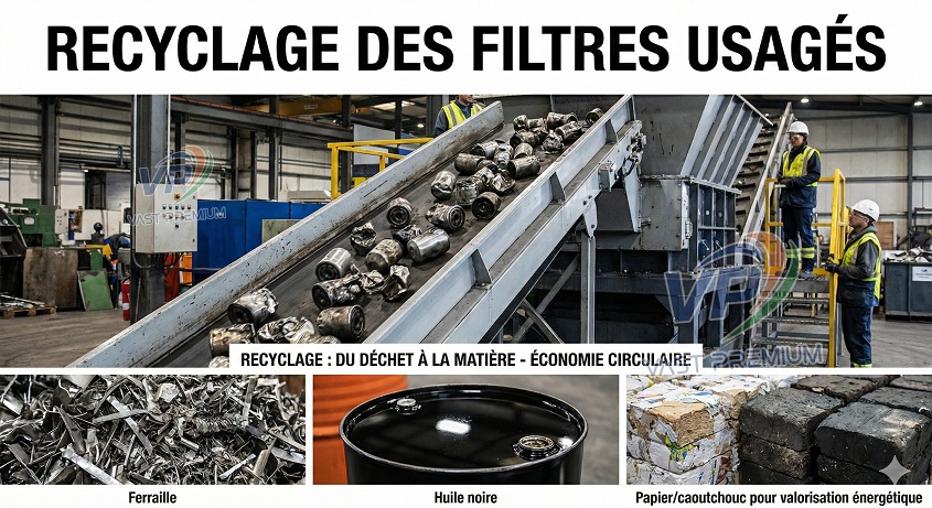 Eurl Vast Premium est conventionnée avec des Recycleurs Agréés pour la collecte et l’élimination des Filtres usagés, Le Filtre usagé est envoyé directement aux recycleurs agréés peur leur Recyclage et Valorisation.