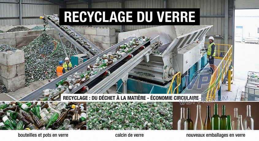 Valorisation de Matière : Le Verre est un déchet recyclable, il est d’abord Broyé, puis envoyé aux traiteurs Agréés pour la Valorisation